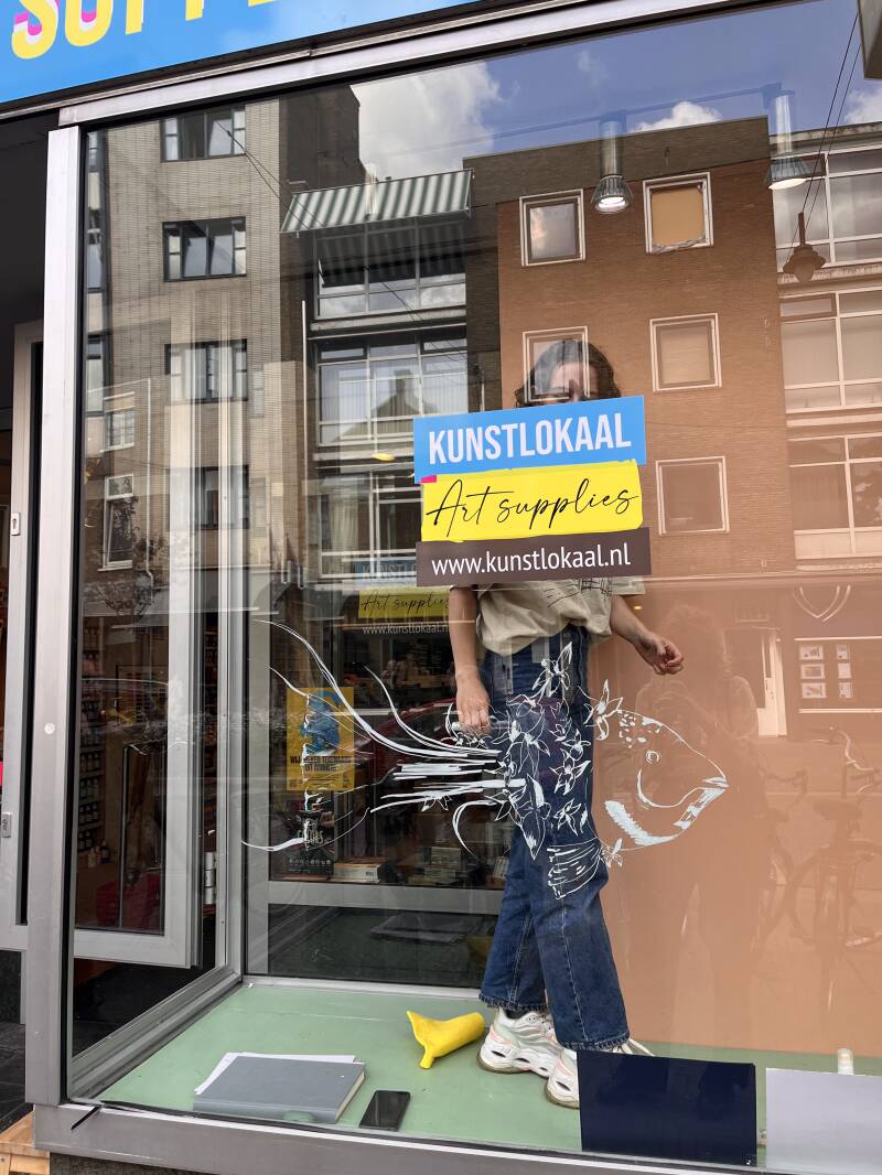 As part of The Big Draw in de buurt Arnhem, Flower Fish was drawn onto the window at Kunstlokaal in the Steenstraat in Arnhem.